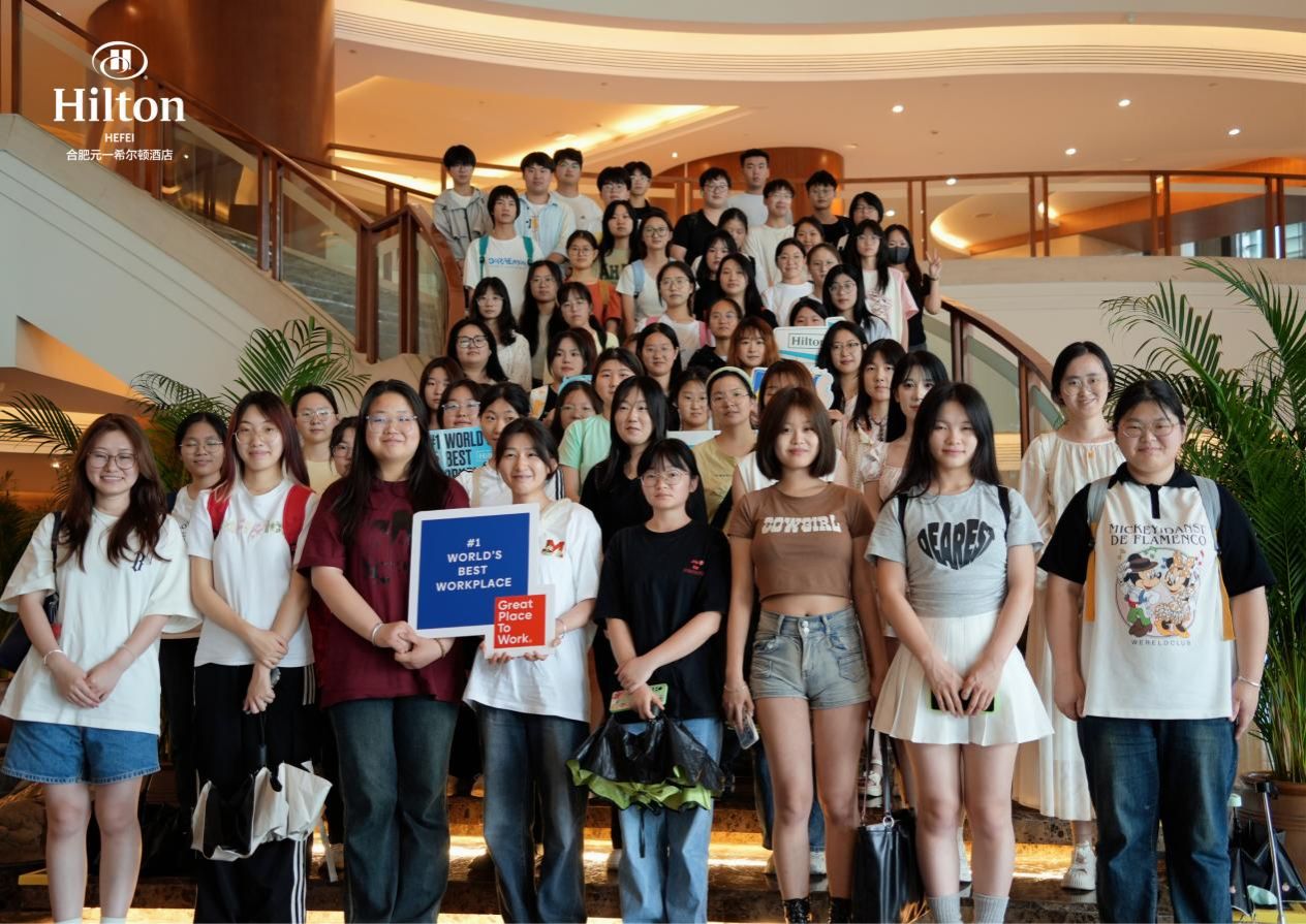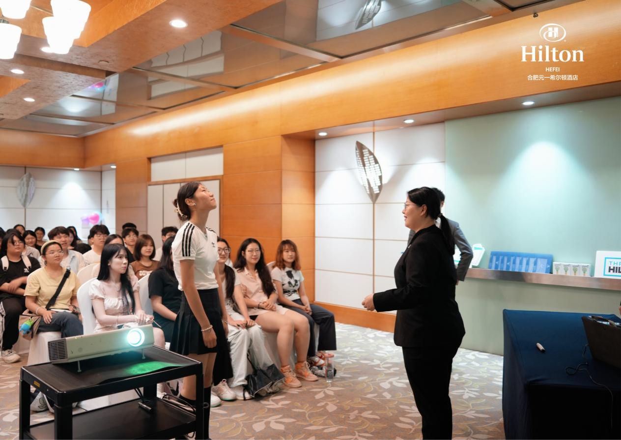 为了全面系统地了解行业动态,更好地理解酒店行业对商务英语人才的需求,6月19日下午,商务英语 2023 级学生在系主任史以一、专业实习实践负责人郑蔚康及专业辅导员朱儒进的带领下,前往合肥元一希尔顿酒店,开启了一场别开生面的专业实践活动。