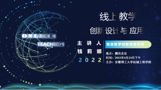 4月23日下午,我院钱莉娜副教授应邀为安徽理工大学机械工程学院举行“线上教学创新设计与应用”讲座并开展交流研讨。会议由安理工机械工程学院姜阔胜副院长主持,学院90余位教师参加会议。会议的形式采用线上与线下融合式,机械工程学院领导及部分驻校值班的老师们在学院会议室,其他教师在线上参会。