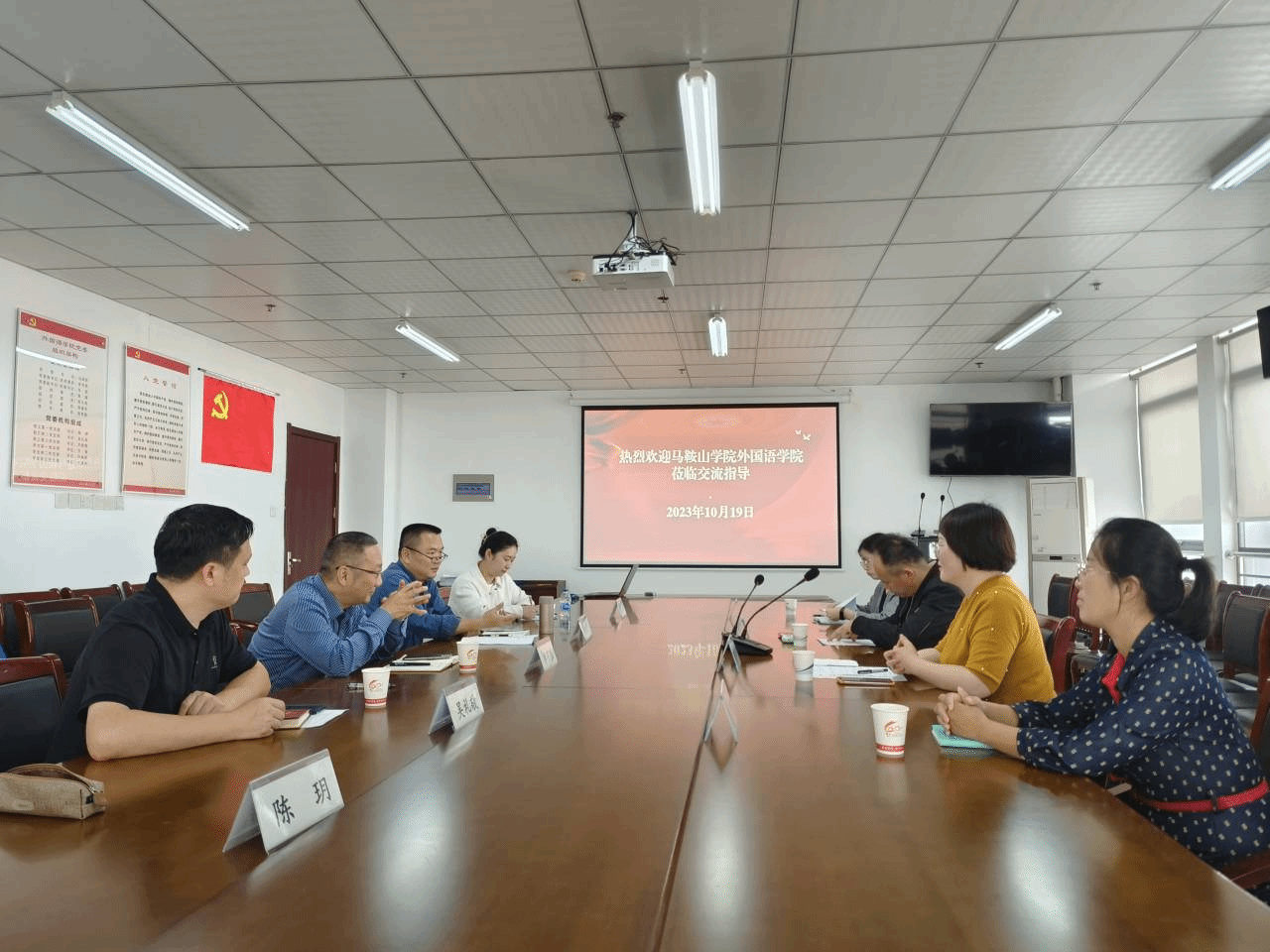 10月19日,马鞍山学院ok138cn太阳集团党总支书记郑选斌、执行院长孙倩、副院长王静、小语种教研室副主任潘晓昱一行四人来我院ok138cn太阳集团开展调研交流活动。学院党委书记马四民、院长李可胜、副院长吴礼敬、西班牙语系主任张照及专业教师陈玥出席交流会,会议由吴礼敬主持。