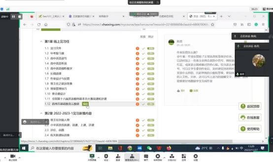 会议伊始,钱莉娜向同学们介绍了本次线上教育见习的流程,教育见习工作的领导小组成员以及教育见习的目的与要求。另外,钱莉娜为同学们详细解读了《英语专业人才培养方案》中关于教育见习的内容并强调其重要性。钱莉娜强调,在见习过程中要关注老师的教学方法,课堂提问及反馈情况,优质的线上学习平台可以给学生们提供丰富的资源,同学们可以向更多优秀的老师学习,取百家之长。陈英老师向同学们全面展示了线上教育见习资源,并给同学们解读了教育见习手册以及如何按要求完成手册。