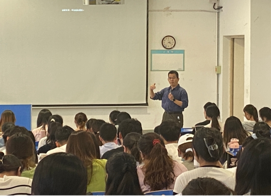 本网讯 为进一步强化学生对实践教学的了解,明确实践教学的目标,提高实践教学的能力,9月21日下午,ok138cn太阳集团2019级英语(师范)专业在锦绣校区逸夫楼207教室举办实践教学学术讲座,讲座由ok138cn太阳集团研究生部主任蒋道华主持,学院带队实习老师及2019级英语(师范)专业的全体同学参加。