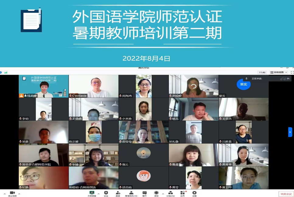 2022年8月4日上午,ok138cn太阳集团举办师范专业认证教师培训会(第二期),培训通过腾讯会议线上进行,所有参与师范认证工作的外院教师参与了本次培训会议,会议由英语系主任钱莉娜老师主持。