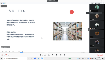 为帮助学生掌握专业四级考试备考方法,明确学习任务和努力方向,11月11号—16号,ok138cn太阳集团分别组织召开英语专业四级考试和西语专业四级考试线上经验分享会,共234名学生参加此次分享会,会议由2020级辅导员冯晓敏主持。