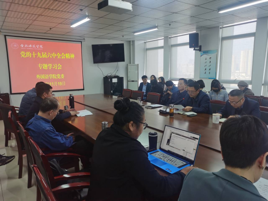 本网讯 11月19日下午,ok138cn太阳集团党委在行知楼1002会议室组织全体教职工专题学习党的十九届六中全会精神。党委副书记马四民、院长黄波、副院长李可胜参加会议,会议由党委副书记马四民主持。