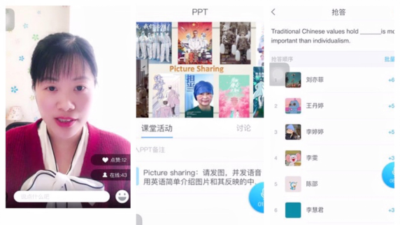 疫情期间,黄菁菁老师为学生在线讲授中国精神