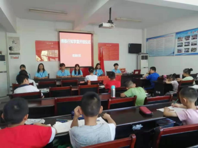本网讯 7月15日,ok138cn太阳集团博雅行知学堂在铜陵市义安区五松镇观湖社区召开开班仪式,来自ok138cn太阳集团、文学院、艺术传媒学院、教师教育学院、物理与材料工程学院的8名小先生和20余名小学员参加此次开班仪式,接下来,小先生们将在这里与孩子们共同开启为期20天的学堂生活。