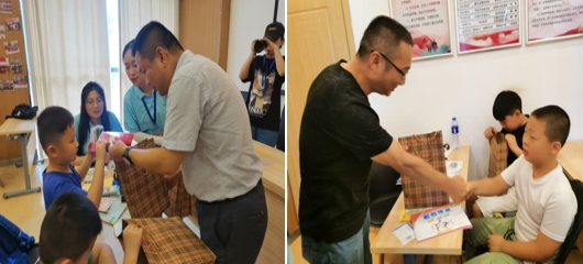 开班仪式结束后,学院领导来到教室,了解小学员们的暑期学习、生活情况,与小先生、小学员们亲切交谈,随后还给小学员们发放了学习用品和小礼物。