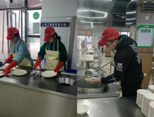 走进学校食堂,清理就餐环境。活动伊始,各班班委带领同学们在桂园食堂一楼集合,班委在与餐厅负责人沟通好劳动的内容和注意事项后,便安排同学们分别前往不同楼层进行劳动,主要劳动内容是帮助食堂工作人员清理饭后餐具、摆放桌椅、抹桌子、舀汤。同学们带上手套,彼此之间互相配合,合作有序,努力营造一个卫生整洁的就餐环境。