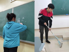 认真打扫教室,落实包保责任。根据学校关于劳动教育的安排,我院2020级每个班级负责打扫一个教室。晚自习后,各班负责打扫卫生的同学带着清洁工具前往包保教室进行打扫,扫地、拖地、擦黑板、倒垃圾、洗拖把……同学们认真清洁教室,并把班级值日表张贴在教室内,辅导员和班委们也会不定期在一旁进行监督,及时提出改善意见,以确保教室的干净、整洁。