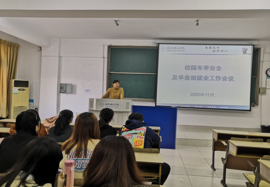 就业安全:11月22-25日,毕业班辅导员周贵勤老师组织召开毕业班学生安全及就业工作会议,周老师从求职安全、就业权益保护、交通安全、工作安全、人际交往安全、疫情防控等方面,要求大家要增强自我保护意识,提防就业陷阱。最后,周老师还提醒同学们考研在即,希望同学们调整好心态,从容面对考试,在毕业之际,还要珍视大学的最后时光,珍惜友谊,注意各方面安全,不要违反校纪校规。