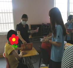 在了解该康复中心的概况和学生情况后,李新宇对这些特殊的孩子们表示特别关心,与各位辅导员老师及“小先生”们一起给小学员们分发慰问品。