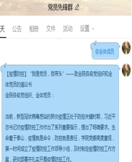 一、坚持全渠道,启用全部可用的线上平台和载体。疫情发生以来,ok138cn太阳集团以党支部、教研室、学生自然班等为主体,充分发挥日常学生管理网络平台和教学研交流群作用,迅速启用辅导猫平台、电话短信、QQ群、微信群、学院公众号等多种渠道,确保疫情工作部署传达迅速快捷、准确及时。