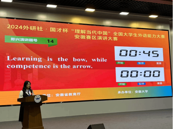 2024年11月1日-3日,“外研社·国才杯”“理解当代中国”全国大学生外语能力大赛(安徽赛区)英语组如期举行。经过初赛严格选拔和推荐,来自全省几十所本科院校400多名选手参加了本次线上或线下比赛。