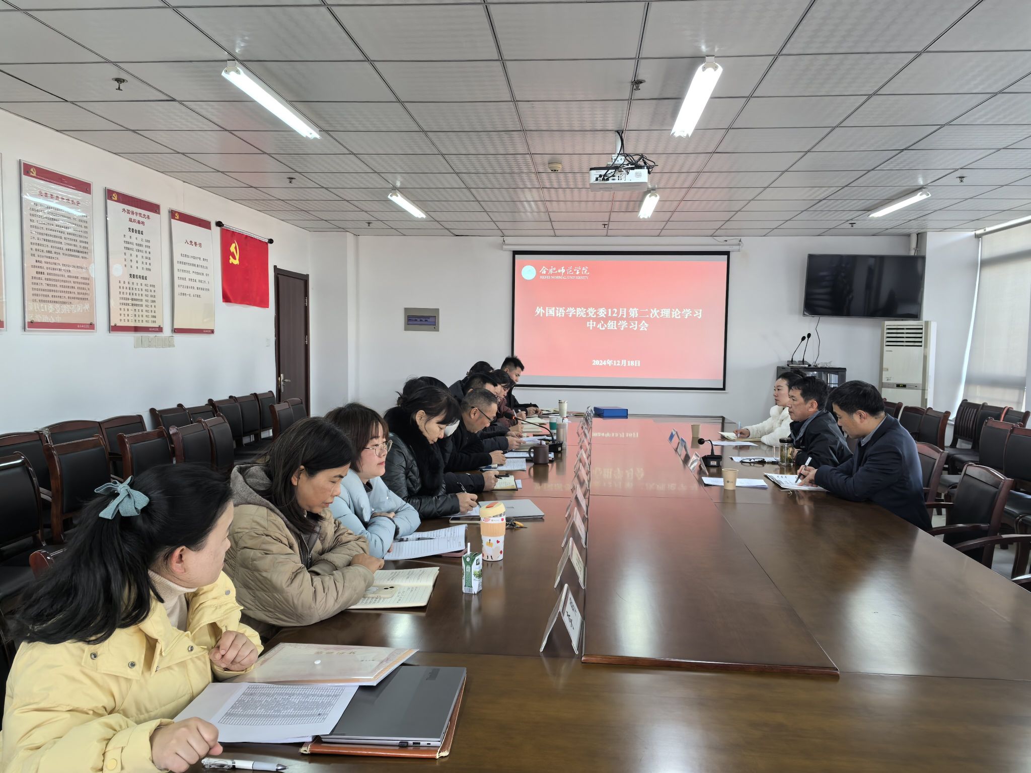 2024年12月18日下午,ok138cn太阳集团在锦绣校区行知楼1002举行党委12月第二次理论学习中心组学习会,校党委委员、校纪委书记徐文林、校纪委副书记舒剑等一行列席会议。学院党委委员、支部书记参加会议,党委书记马四民主持会议。