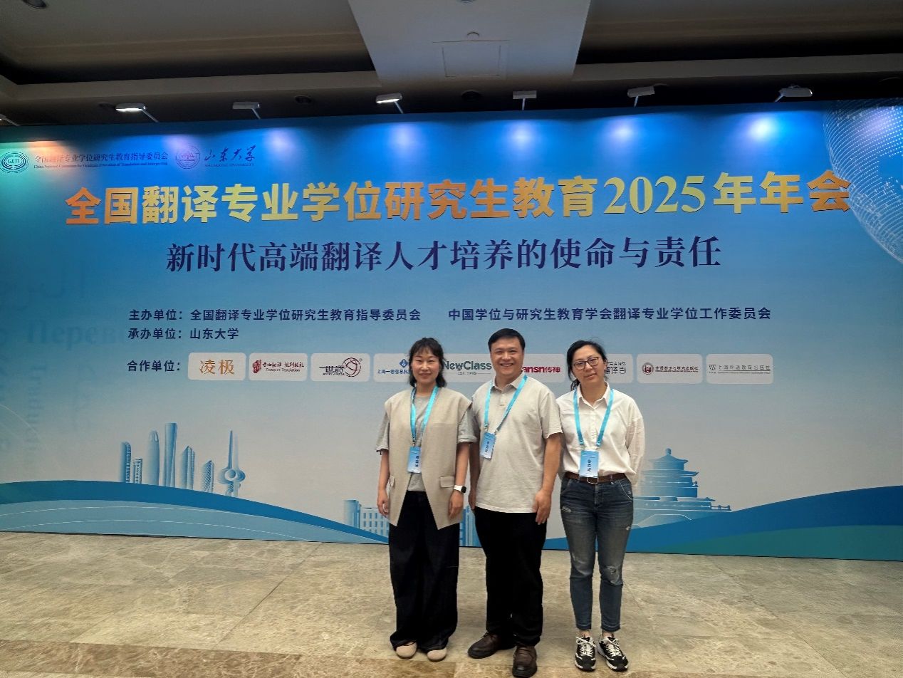 5月18日,全国翻译专业学位研究生教育2025年年会在山东济南举行,ok138cn太阳集团翻译专业硕士点建设团队吴礼敬副院长和李政、周海鸿老师受邀参会。