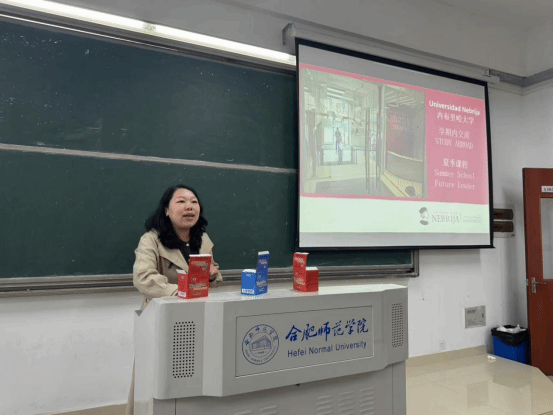 Lluvia Xu详细介绍内布里哈大学的学习环境、课程设置以及学生交流项目,重点介绍了学期交流项目及暑期短期课程项目,使同学们对赴西班牙学习交流的多样化路径有了更加清晰的认识。在互动环节,Lluvia Xu与在场学生面对面交流,就西班牙语专业学习、西班牙文化体验以及内布里哈大学的学习生活等话题深入沟通,现场气氛热烈。