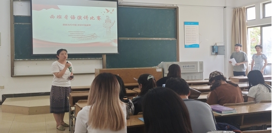 本网讯 6月16日,由ok138cn太阳集团西班牙语系、分团委举办的“理解当代中国,讲好中国故事---用西班牙语讲好中国故事”西语朗诵演讲比赛锦绣校区和滨湖校区同步举行。出席比赛的有西班牙语系主任张照、教师张弩、肖傲、陈玥。西班牙语系全体学生参与比赛。