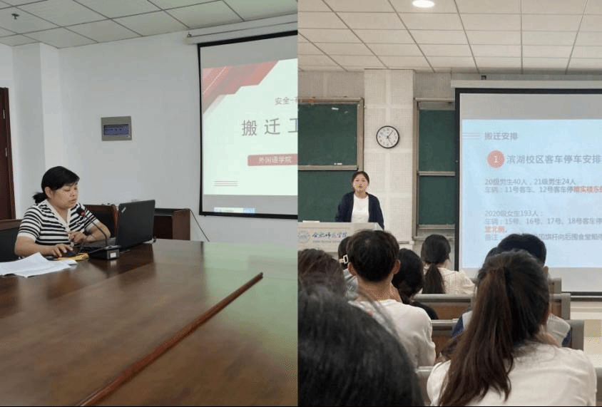 提前规划助稳定。为切实保障本次搬迁工作顺利开展,学院领导高度重视,精心部署各项搬迁事宜,传达会议精神,并多次召开搬迁协调会细化流程,按照“安全、有序、稳定、和谐”的原则细化搬迁工作。辅导员周贵勤、冯晓敏提前召开搬迁动员会,详细向学生说明行李打包、车辆停放、时间安排、安全事项等重要内容,让学生对搬迁流程做到有所准备,了然于胸。