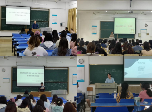 陈婷通过分析往届商务英语专业学生的考研情况,让同学们更加明晰当前的考研形势,并向同学们提出考研中的注意事项及期望。