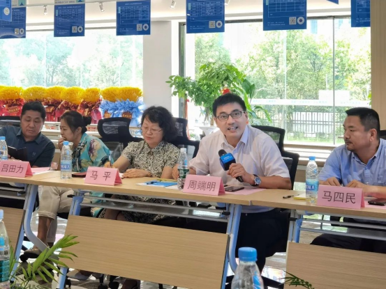 周端明介绍了学校的基本情况与毕业生就业的整体趋势,周端明介绍了学校的总体发展、专业建设、人才培养情况以及毕业生就业等工作,并指出此次访企拓岗活动的目的是推深做实产教融合、校企合作,精准服务本地企业人才需求、服务地方经济社会发展。期待学校和蜀山区能够充分发挥优势,围绕人才培养、科技创新、产学研合作、学生就业创业等方面,进一步拓宽合作领域,创新合作机制,开展更加紧密有效的交流合作。