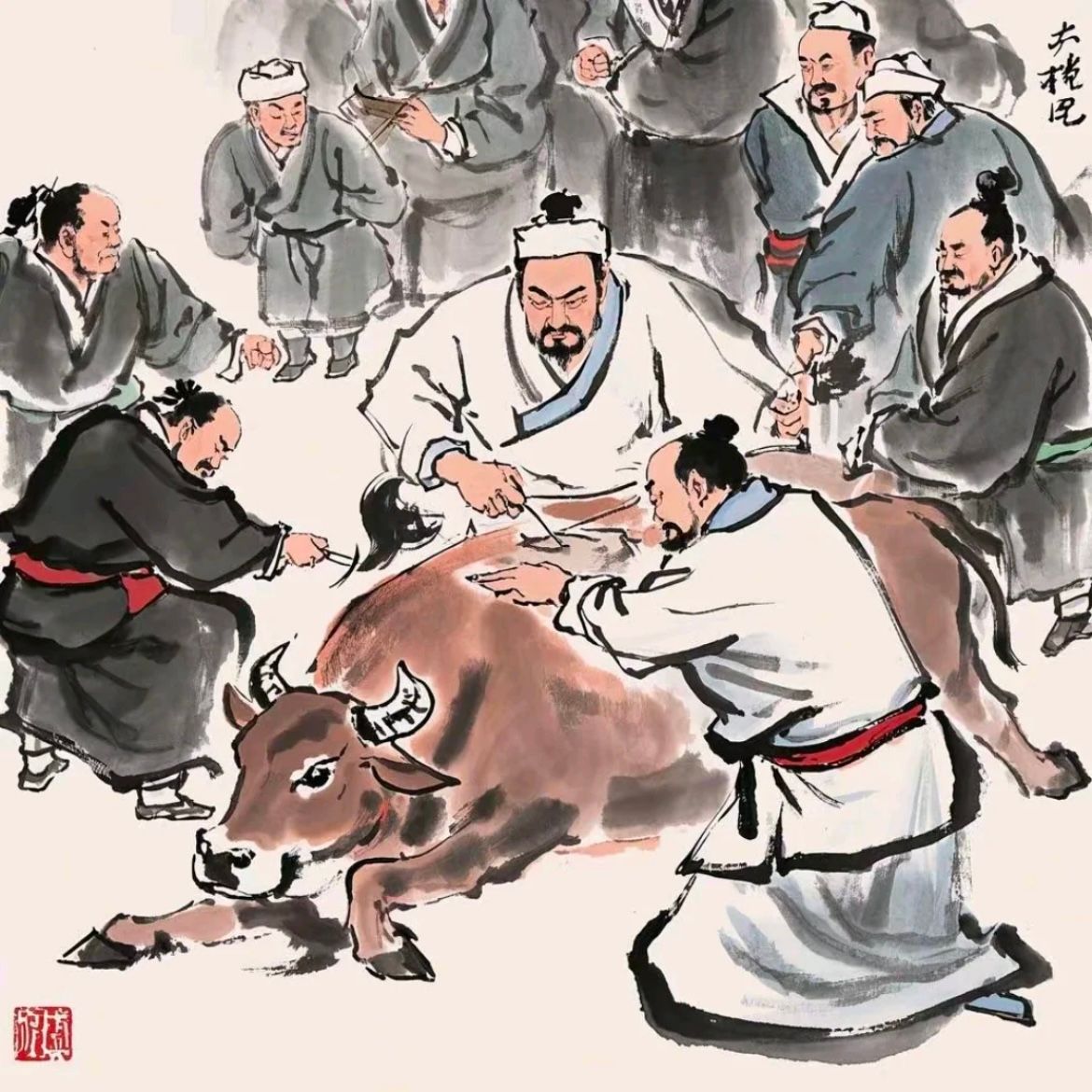 《庄子》养生主篇以“庖丁解牛”的寓言,勾勒出中国最早的生态哲学图景。刀刃在筋骨间游走的轨迹,正如人类在自然法则中探寻生存的空间。庄子以“依乎天理”的智慧揭示了只有顺应自然脉络,才能如庖丁之刀“十九年若新发于硎”。文中“批大郤,导大窾”的技艺,暗喻人类需要洞察生态系统的肌理,于万物纹理中找到生命韵律。牛体筋骨交错的结构意指大自然的运行密码,而刀刃的进退收放恰似生命与环境的动态平衡。庄子以“技近乎道”的哲学升华提醒我们:真正的养生不在于征服自然,而在于“以无厚入有间”。这种东方生存智慧,在千年之后仍在指引我们重寻天人和谐共生的生命节奏。
